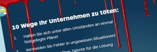Zehn Tipps, deren genaues Gegenteil Sie befolgen sollten, wenn Sie Ihr Unternehmen innovativ entwickeln wollen. GRATIS für unsere Newsletter-Abonnenten. Schick uns einfach eine Mail bzw. melde dich vorher zu unserem Newsletter an.